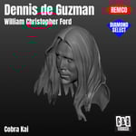 3D resin printed head in the likeness of Dennis de Guzman Old Version from the TV show Cobra Kai. Designed with the head size and necks for both Remco and Diamond Select scale figures.