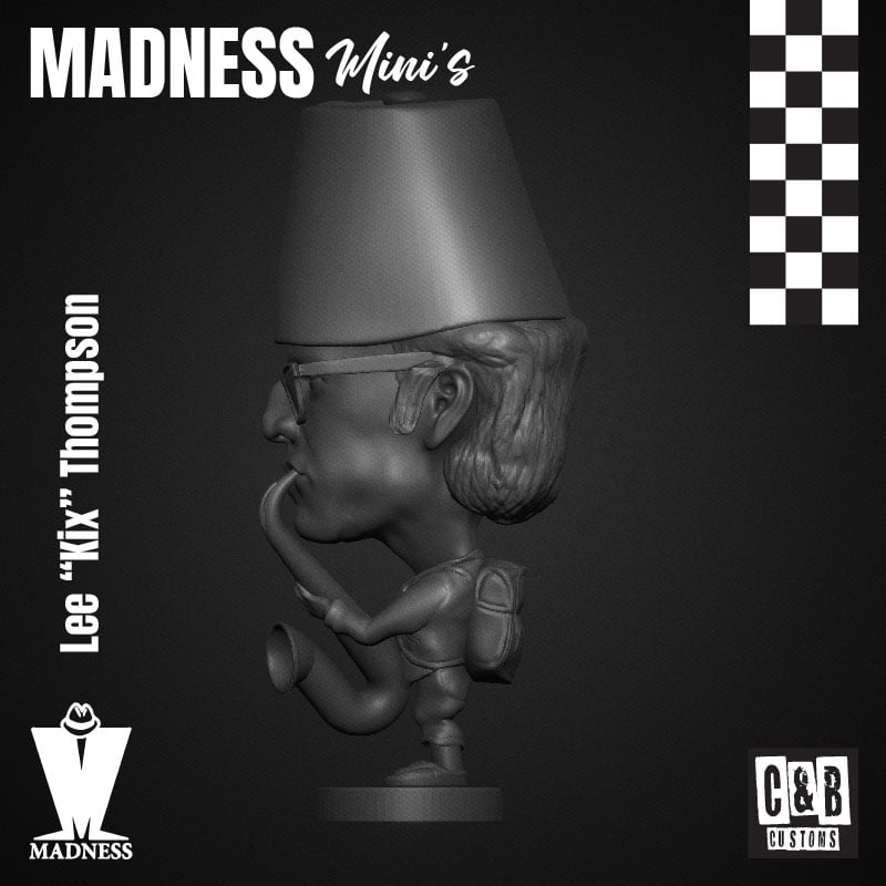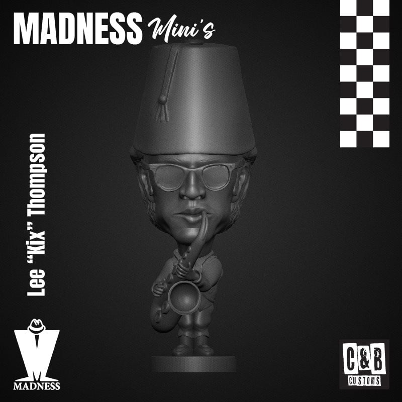 Here we have a miniature figurine of Madness sax player Lee Thompson. Seen in his attire from the now legendary Night boat to Cairo music video
