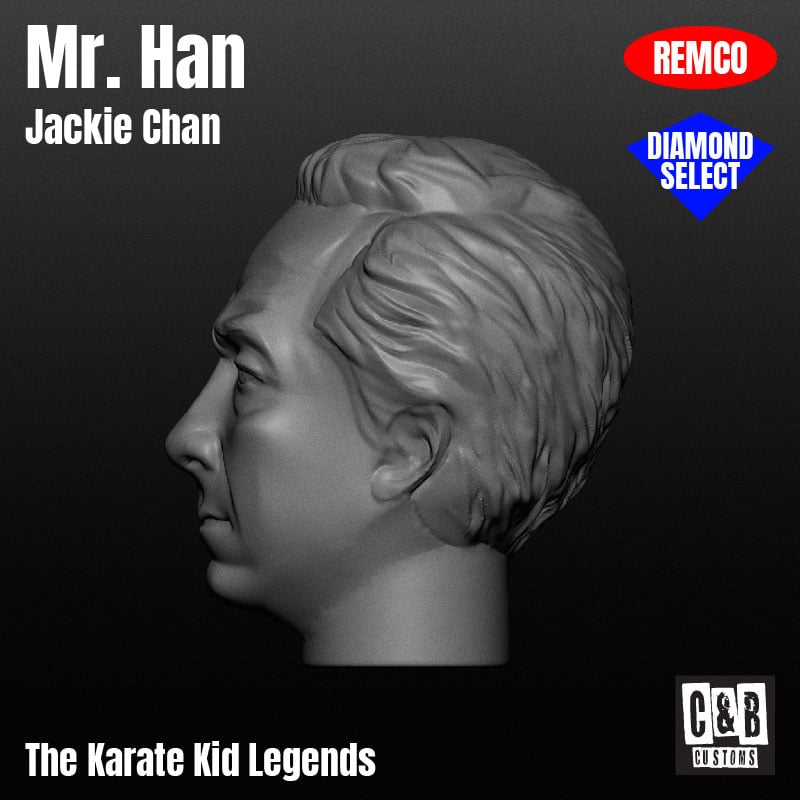 3D resin printed head in the likeness of Mr Han from the hit movie The Karate Kid Legends. Designed with the head size and necks for both Remco and Diamond Select scale figures.
