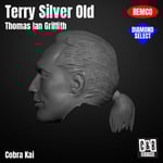 3D resin printed head in the likeness of Terry Silver Old Version from the TV show Cobra Kai. Designed with the head size and necks for both Remco and Diamond Select scale figures.
